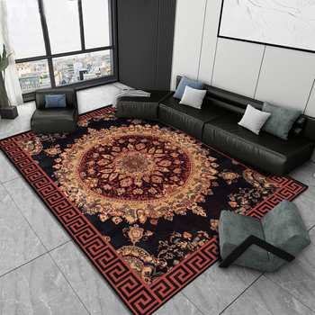 Tapis de salon imprimé grand tapis tapis lavable en Machine pliable brun rougeâtre tapis Vintage tapis de maison tapis de salle à manger